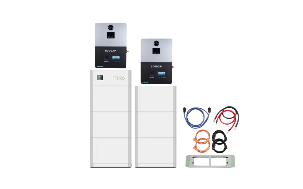 But that’s not all. The ETHOS is paired with a state-of-the-art 6000W split-phase inverter & charger from EG4, which features an LCD touchscreen, 2 MPPT inputs, an integrated UPS module for seamless on and off-grid switching, and the capacity to manage PV arrays up to 8000W. With smart load control, AC coupling, and peak shaving capabilities, you can meet your power needs while protecting your home from grid instability or blackouts. Plus, you’ll enjoy significant savings on your electric bill through peak shaving and time-of-use offsetting.