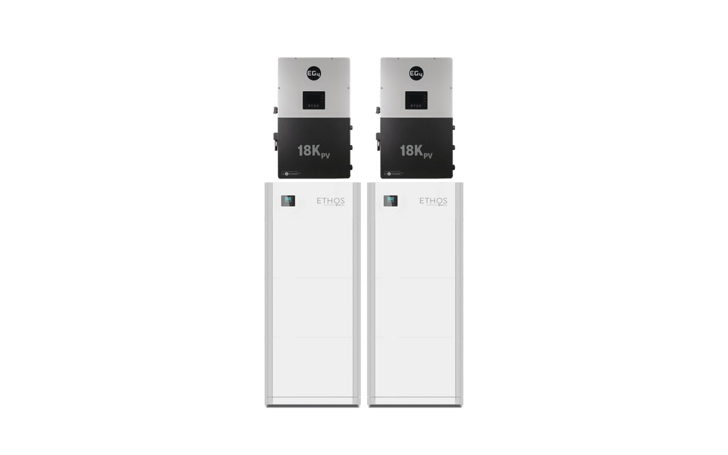 But that’s not all. The ETHOS system is paired with two state-of-the-art 12000W EG4 hybrid inverters, each featuring an LCD touchscreen display, 3 MPPT inputs, integrated UPS modules for seamless on- and off-grid switching, and the ability to handle PV arrays up to 36000W. With smart load control, AC coupling, and peak shaving functions, the ETHOS meets your power needs while protecting your home from unstable grids or blackouts, all while providing significant savings on your monthly electric bill.